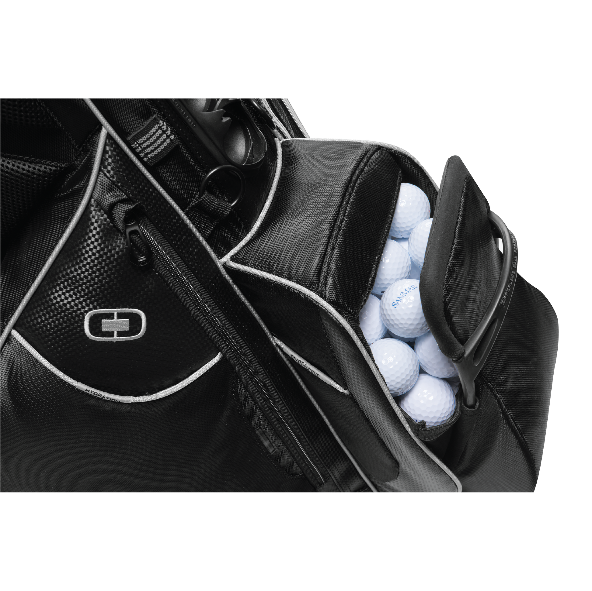 This Black True North golf bag is a dream come true for golfers! Featuring an innovative 9.5" Woode™ top with an integrated grab handle and an oversized putter pit, a ZBP™ (or Zipperless Ball Pocket) and an OGIO Ball Silo™, you can golf in style and convenience. Plus, with 6 zippered pockets, a fleece-lined valuables pocket, a walking-accessible water bottle holster and a scorecard sleeve, you can store pretty much anything - and with a detachable side pocket for decoration, you can make it your own too! All you need now is your 'A' game!