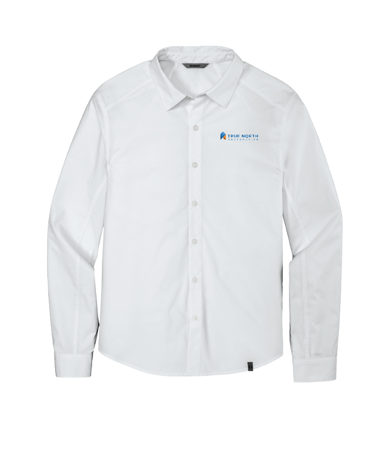White - 3.5" Blue Embroidered Line Logo on the Left Chest