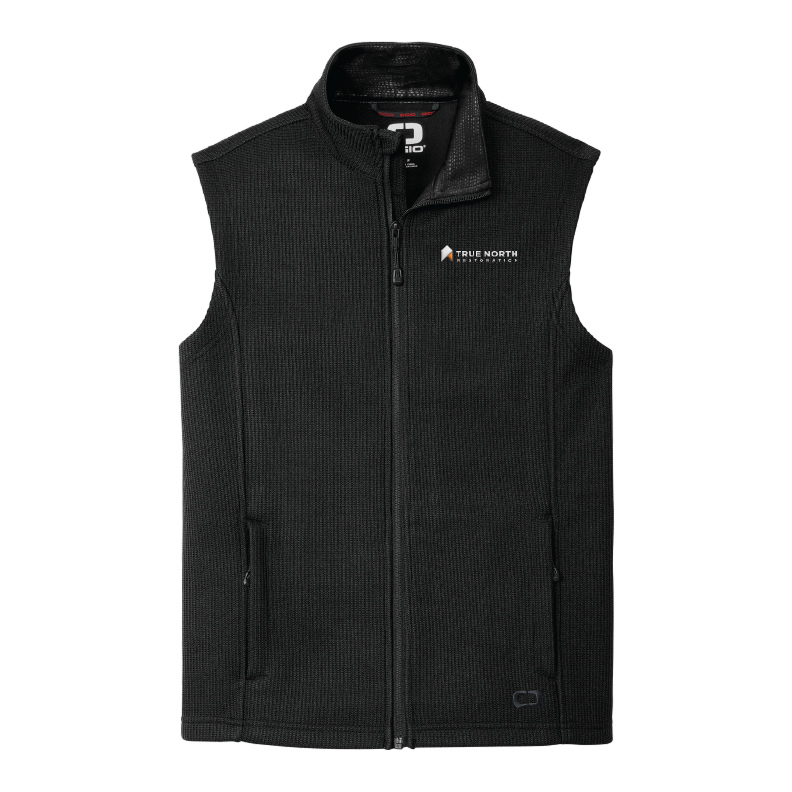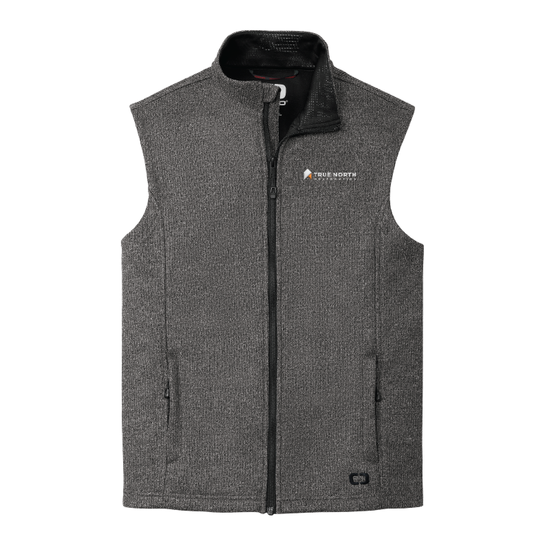 A 12.4-ounce, 100% poly knit bonded to 100% poly brushed-back fleece, complete with OGIO heat transfer label for tag-free comfort, an OGIO locker loop, and a zip-through collar, make the True North Grit Vest a professional choice. It also features an embossed lining with a subtle O pattern, reverse coil zipper with OGIO zipper pull, embroidery access pocket, front zippered pockets, and an embroidered O on the front left hem, as well as an open hem.