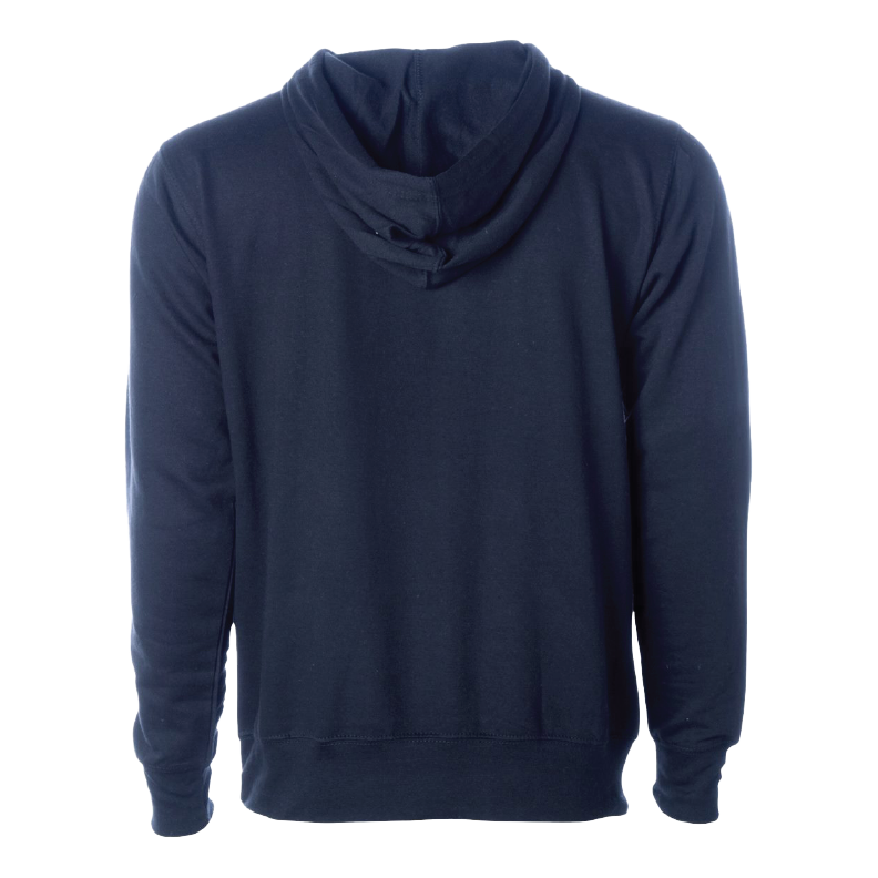 Black and Navy - 11" White Heat Transferred Line Logo on the Center Chest