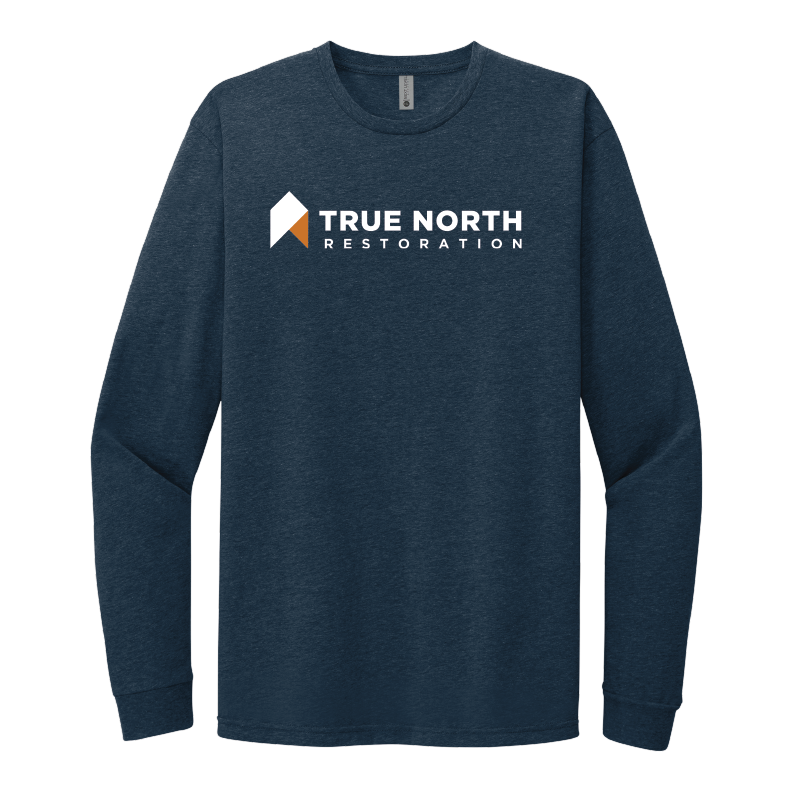 Black and Navy - 11" White Heat Transferred Logo on the Center Chest