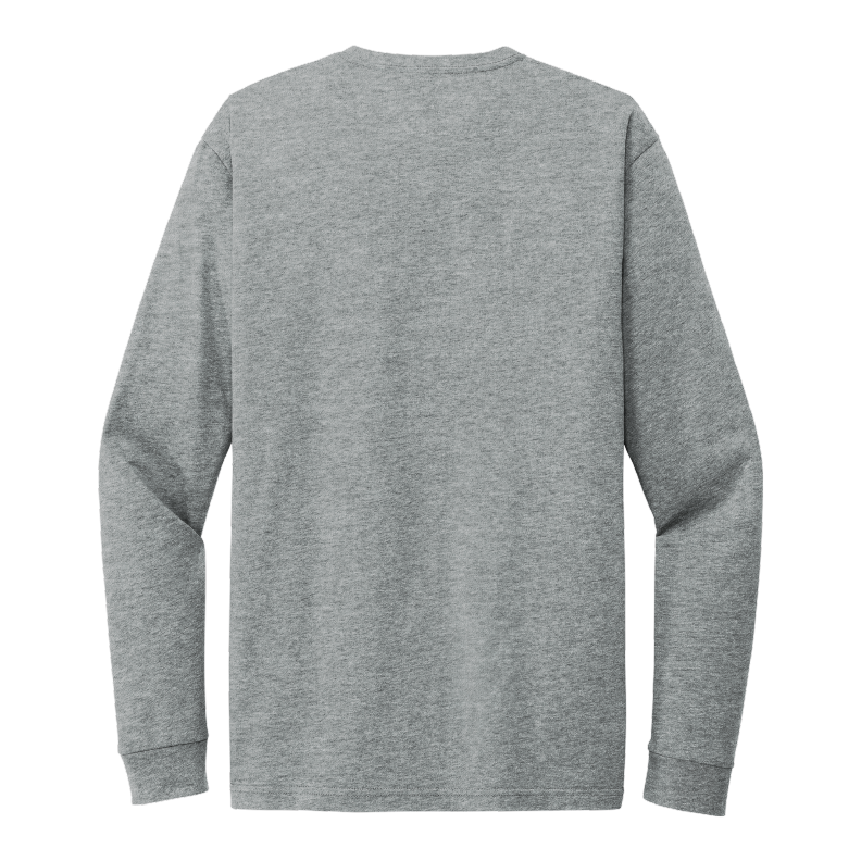 Crafted from a 4.3-oz blend of 60/40 cotton-polyester, this long sleeve tee features a CVC blend, 1x1 rib knit neck, hemmed sleeves, shoulder-to-shoulder taping, and side-seam construction.