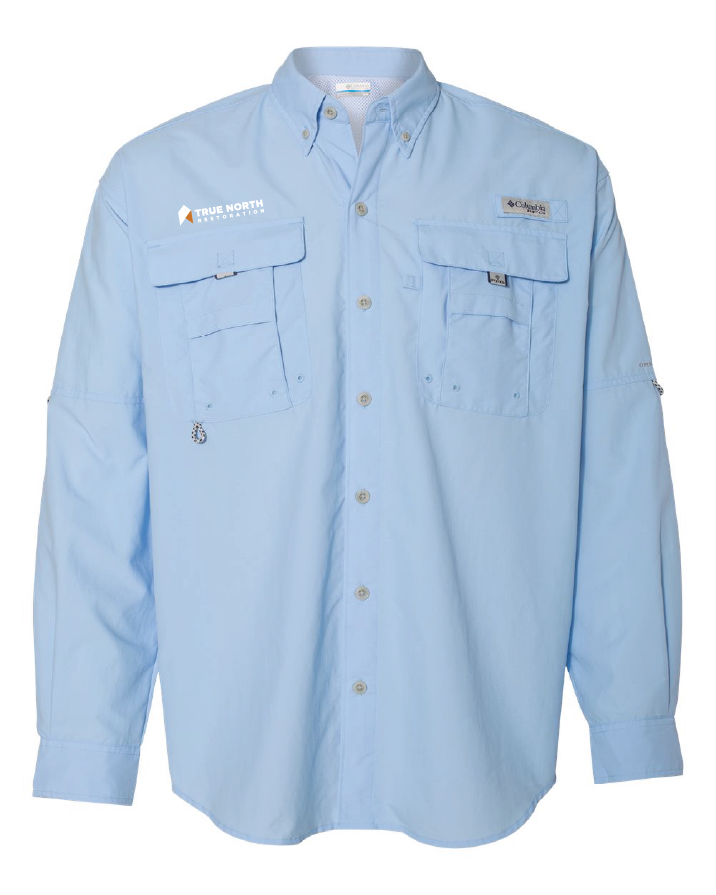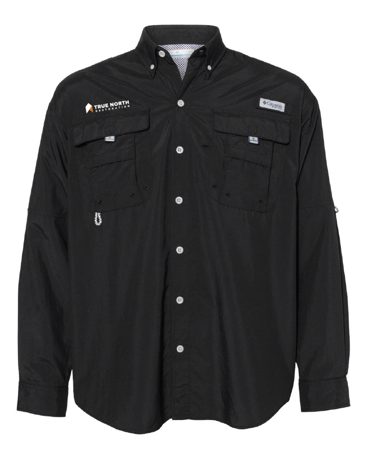 Stay protected and comfortable on your outdoor adventures with the True North Men's PFG Bahama™ II Shirt. Made with 100% Tactel® nylon, this shirt offers quick-drying and antimicrobial properties. The hidden shoulder vents and mesh back lining provide ventilation, while the Omni-SHADE™ UPF 50 sun protection keeps you safe from harmful rays. Plus, with features like lift-top front pockets, roll-up sleeves, and a rod-holder loop, this shirt is both functional and stylish. And let's not forget the quirky button-up collar and Columbia woven patch logo for added flair. Get ready to conquer the great outdoors in style!