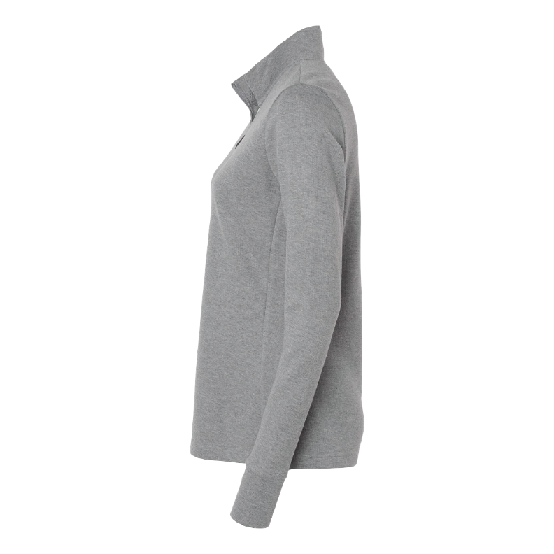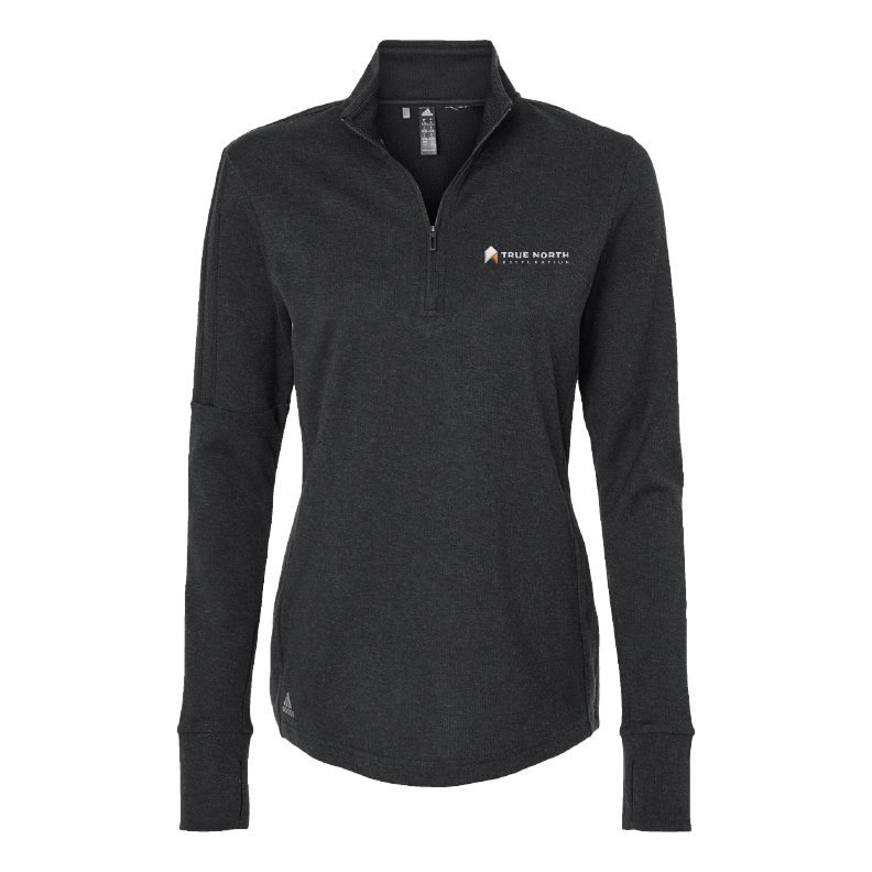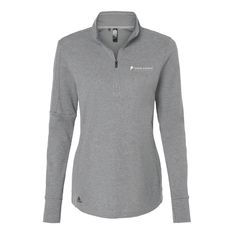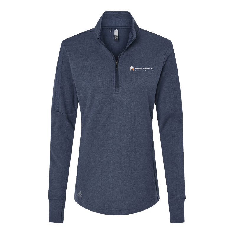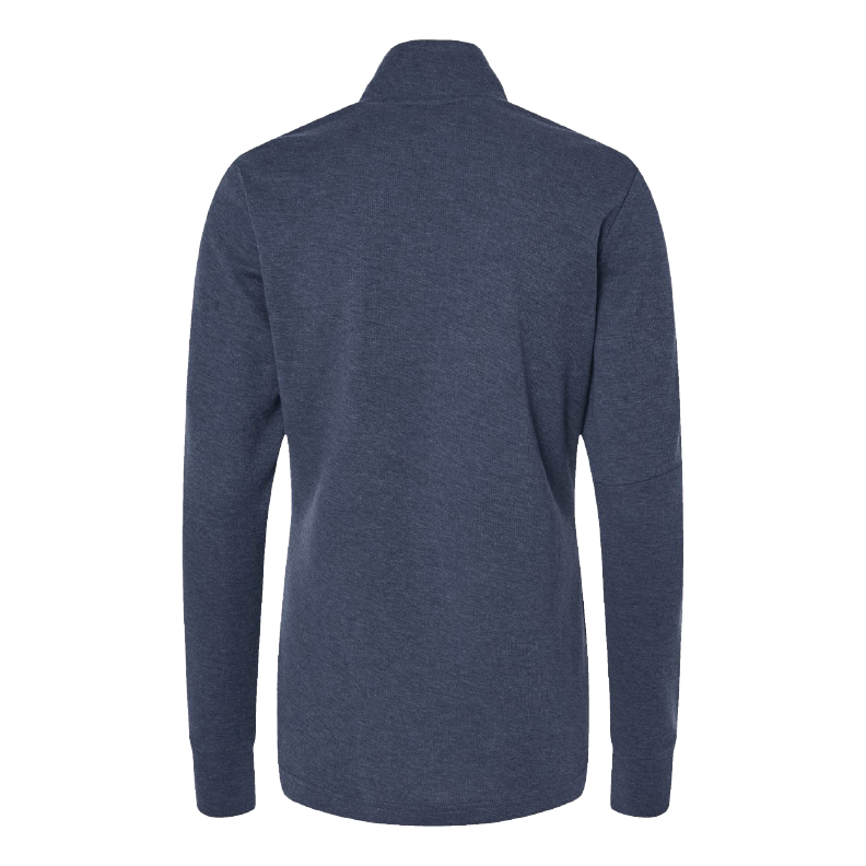 This 6.5 oz./yd² (US) and 10.85 oz/L yd (CA) quarter-zip sweater is made of a 53/47 cotton/recycled polyester blend and has moisture management properties. It also has a 3.5" embroidered logo along the left chest, a stand up collar, a tonal 3-stripes logo on the right sleeve, and a contrast adidas logo on the right hip.
