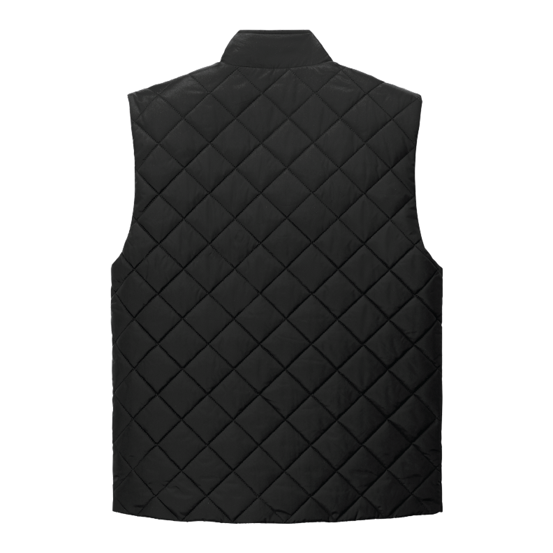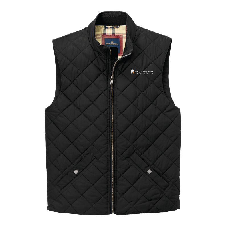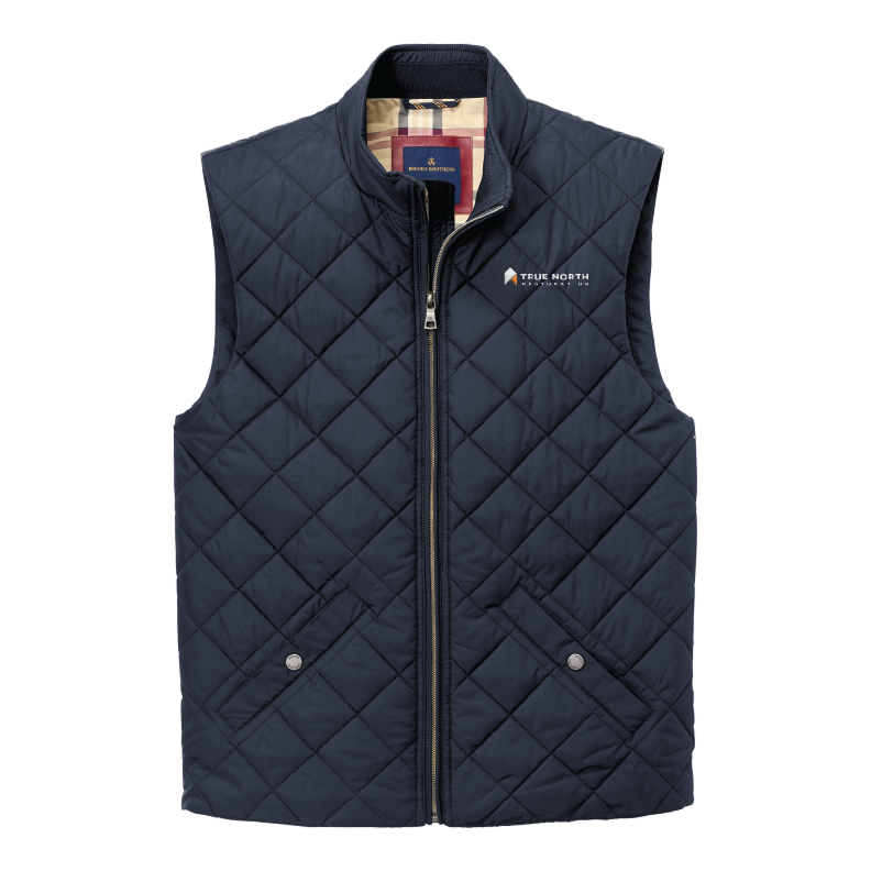 This vest is constructed from a 100% polyester shell and lining. It boasts a 2.9-ounce polyfill insulation, a Brooks Brothers tie-stripe hanging loop, a Metallion coil front zipper with a metal Brooks Brothers Golden Fleece logo zipper pull and piped kissing welt, a rib knit lined collar, hand pockets secured with Brooks Brothers logo snaps, an interior zippered chest pocket, Brooks Brothers tartan plaid on the interior yoke and inside hand pockets, a faux leather label patch and an embroidery access pocket.
