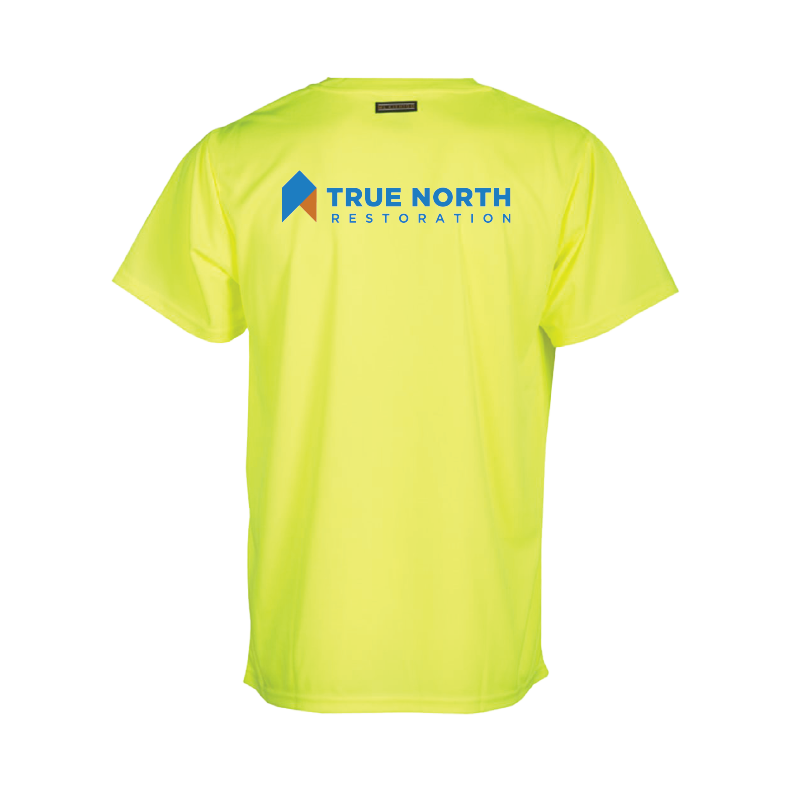 This True North Short Sleeve Safety is composed of 100% microfiber polyester, which grants enhanced absorbency and breathability to ensure comfort in warm temperatures. For added convenience, a pocket is provided on the left chest, while UV protection shields the arms from the sun's rays.