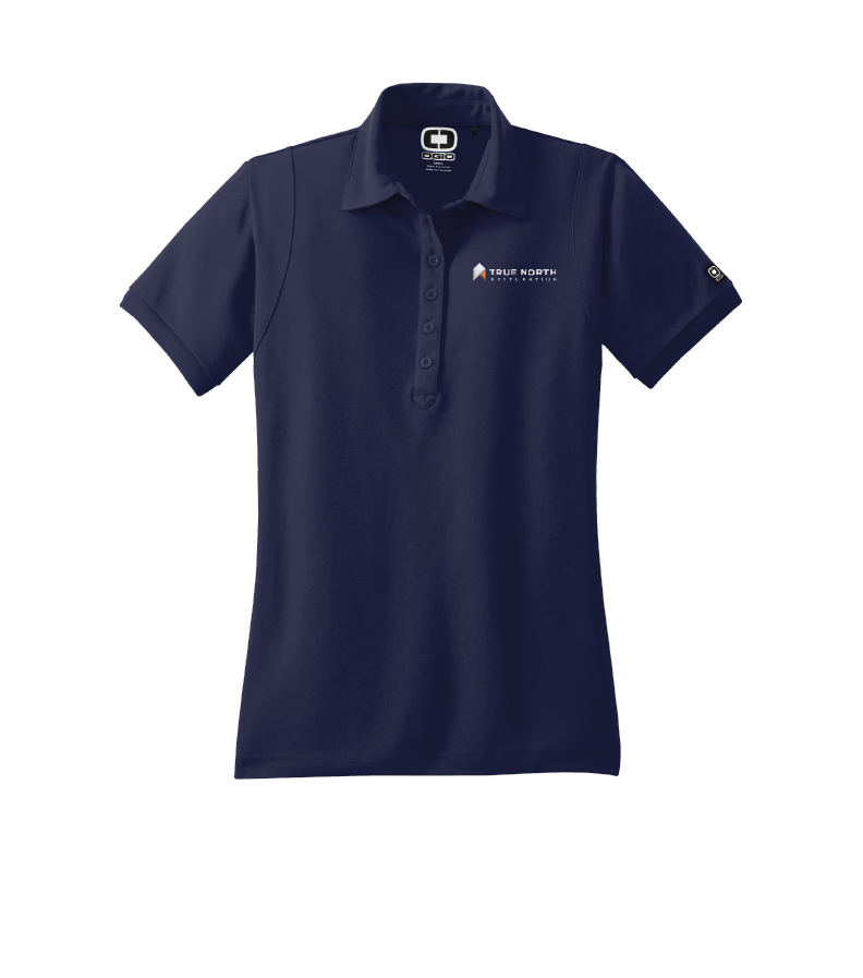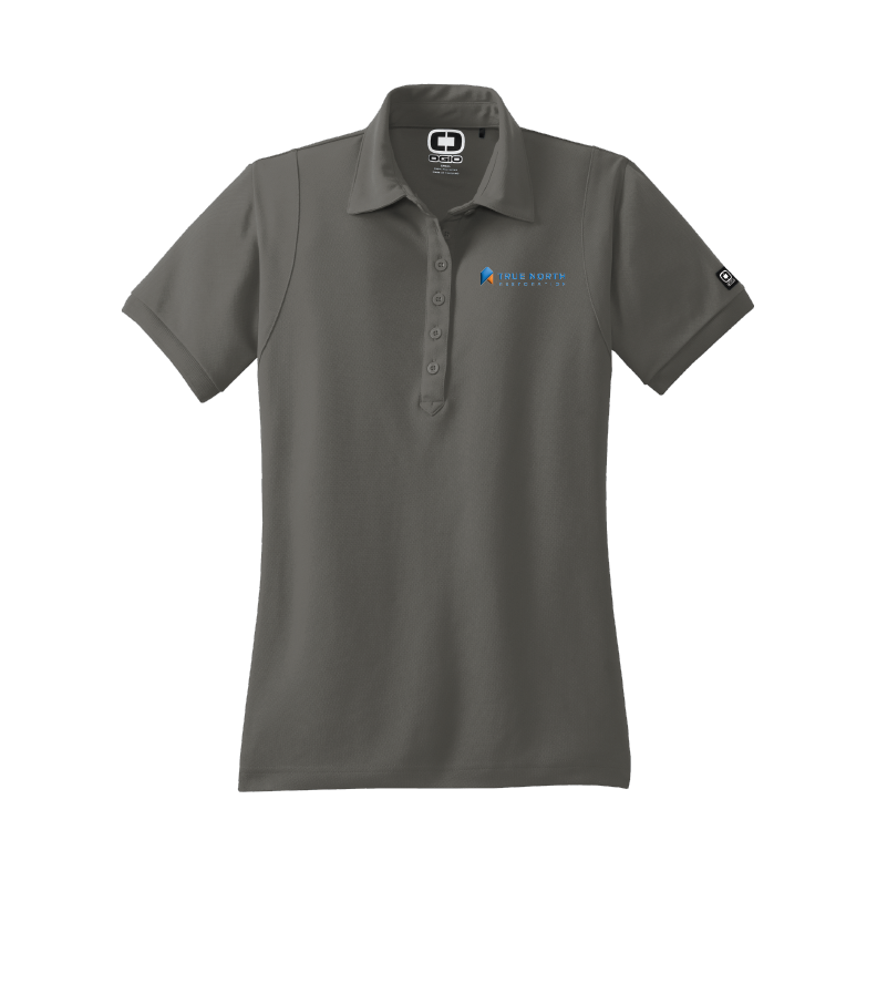 The True North Women's Jewel Polo is crafted from lightweight 5-ounce, 100% poly pique with wicking technology for coolness. It also features a self-fabric collar and flat knit cuffs, arm seaming accent, set-in sleeves, a tag-free OGIO heat transfer label, and a 6-button placket with dyed-to-match OGIO buttons. An OGIO badge decorates the left sleeve.