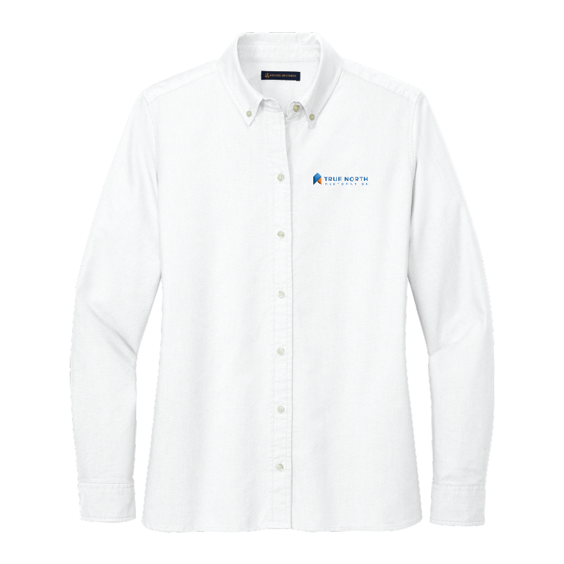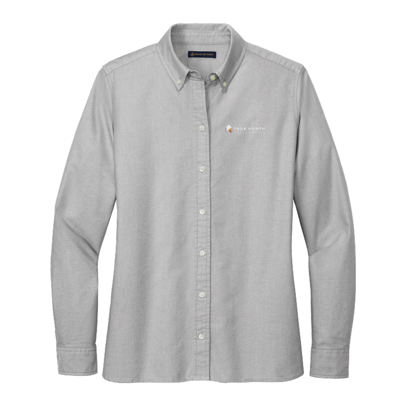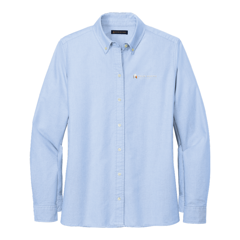 The True North Women's Oxford Shirt features a lightweight 5-ounce, 100% cotton oxford and a garment wash. It boasts a button-down collar and a button at the center back collar, as well as a box pleat and locker loop at the back yoke. The pearlized buttons, with the Brooks Brothers logo, add a touch of sophistication, while gussets at side seam and rounded, adjustable cuffs provide further practicality and comfort. 3.5" logo on the left chest.