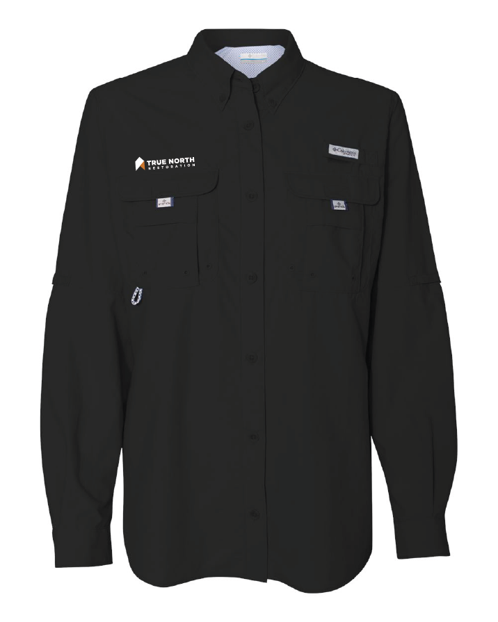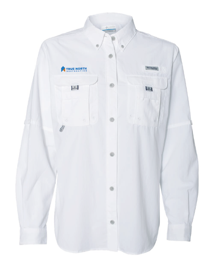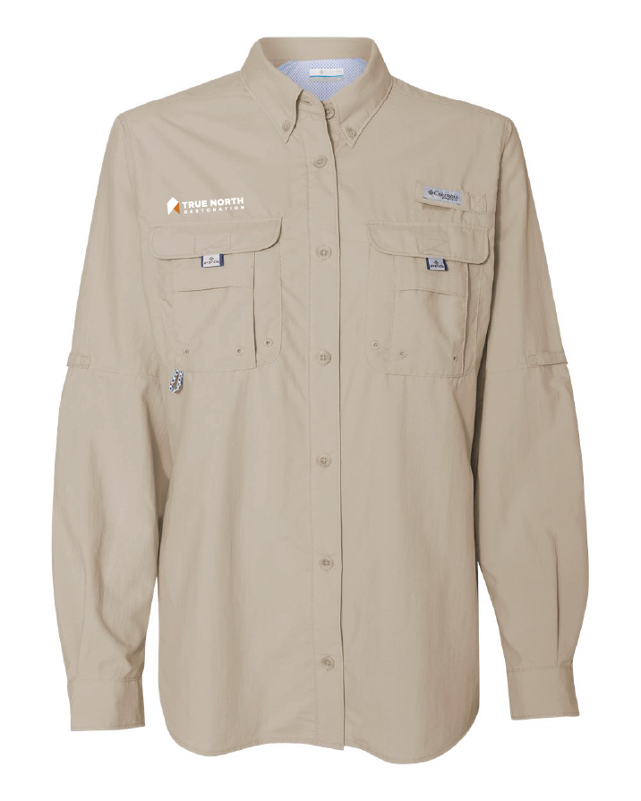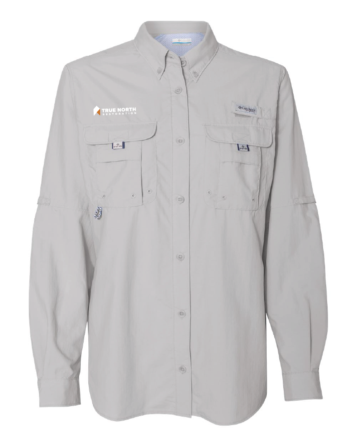 Stay comfortable and protected on your next outdoor adventure with the True North Women's PFG Bahama Shirt. Made with 100% polyester ripstop, it features Omni-SHADE™ UPF 40 sun protection and Omni-WICK™ technology to keep you cool and dry. With vented design and zippered pockets, it's perfect for fishing and outdoor activities. Plus, show off your love for Columbia with the woven patch logo on the left chest.