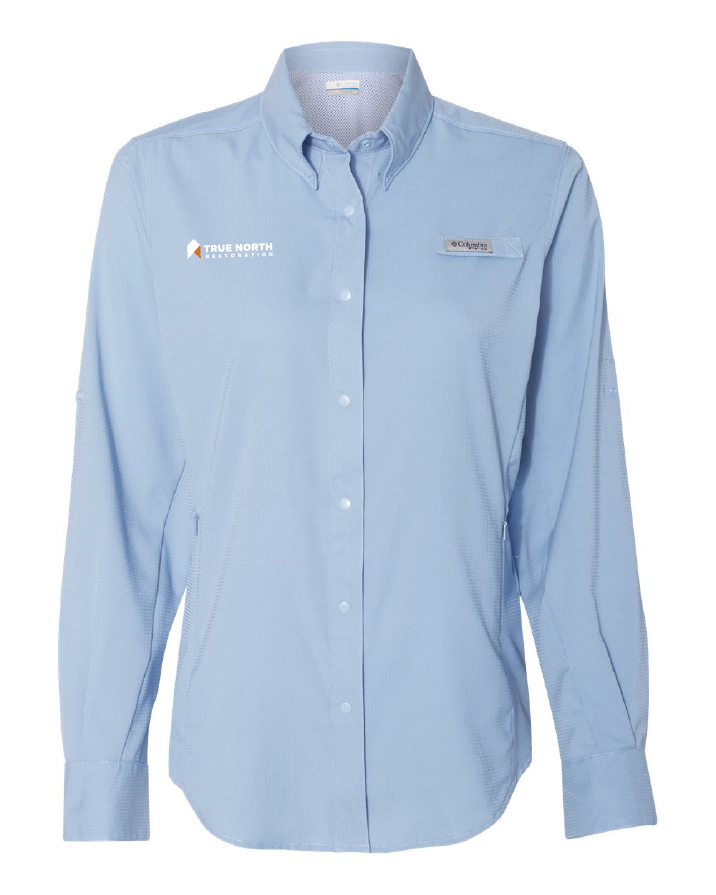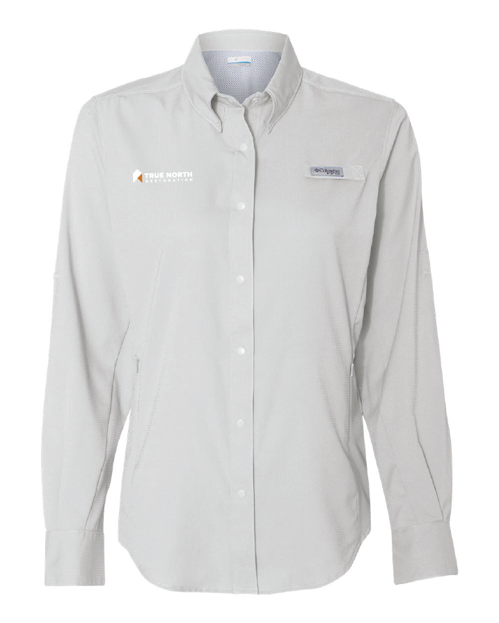 Stay protected from the sun and comfortable on your fishing trips with the True North Women's PFG Tamiami™ II Shirt. Made from 100% polyester ripstop, it features Omni-SHADE™ UPF 40 sun protection and Omni-WICK™ for moisture-wicking. The vented design, roll-up sleeve, and zippered hand pockets add convenience, while the rod holder and Columbia woven patch logo add a touch of style.