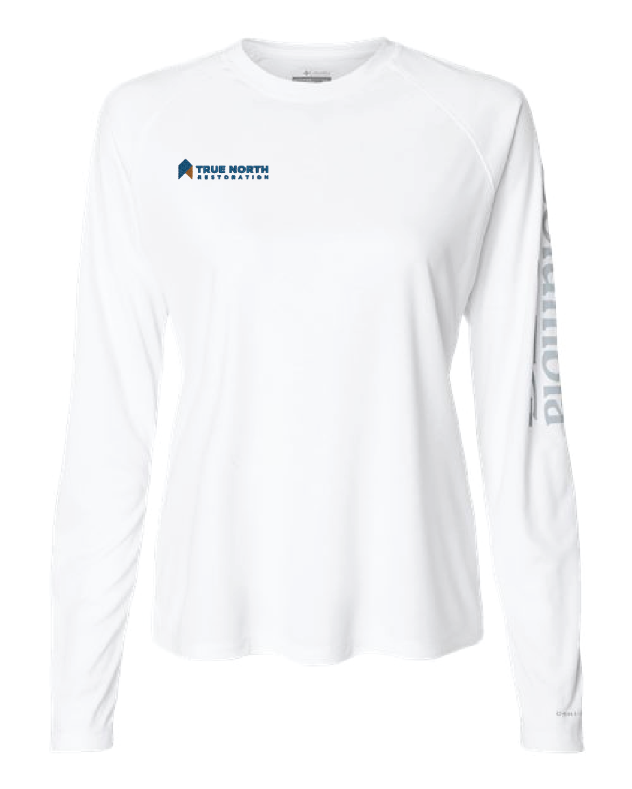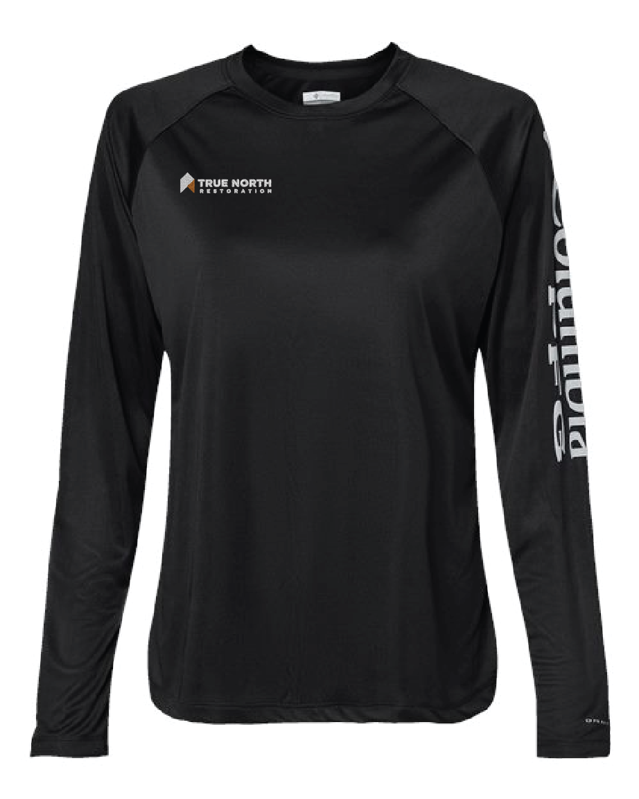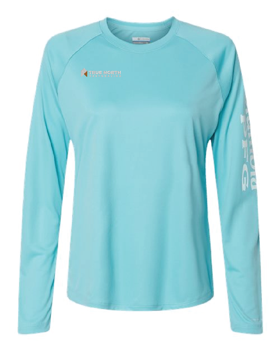 Stay protected in style with the True North Women's PFG Tidal Tee II Long Sleeve. Made from 100% polyester, this shirt features Omni-SHADE™ Broad Spectrum UPF 50 sun protection and Omni-WICK™ technology for quick drying. Plus, the Columbia logo adds a touch of flair. (SPF power + moisture control + cool logo = your new go-to shirt!)